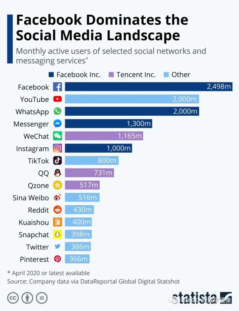 截止到 2020 年末的最新统计数据,全球 77 亿人口,有 35 亿已经接入了互联网,其中 27 亿都是社交网络的用户,Facebook 依然是社交之王。